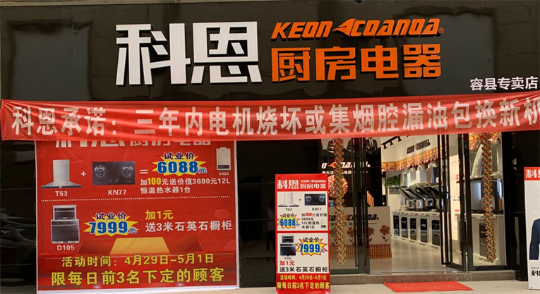 熱烈祝賀科恩廚房電器廣西容縣專賣店隆重開業