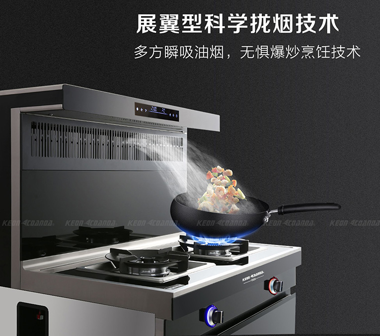 如科恩智能炫彩系列集成灶D620采用五合一全能配置,百搭廚房,空間好利用,安裝一步到位,機(jī)頭部分采用藍(lán)色氛圍燈設(shè)計,使廚房增添光彩,同時還配備60℃恒溫置物臺,能夠時刻守護(hù)菜肴美味同時節(jié)省更多空間。在烹飪方面,科恩智能炫彩系列集成灶D620也設(shè)計得非常到位,火力全面升級,爆炒更有勁,其擁有5.0KW強(qiáng)勁火力,大火更猛,小火更穩(wěn),美味無需等待。在吸煙方面,科恩智能炫彩系列集成灶D620采用展翼型科學(xué)攏煙技術(shù),搭配≥420Pa大風(fēng)壓,瞬吸廚房油煙,無懼爆炒烹飪技術(shù)!