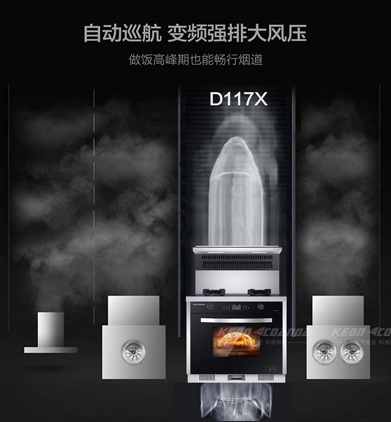 作為10余載高端廚電品牌,科恩電器一直引領(lǐng)著集成灶行業(yè)的發(fā)展,始終秉承著“為顧客提供更優(yōu)質(zhì)的廚電產(chǎn)品”。為時(shí)刻應(yīng)對(duì)消費(fèi)者需求,科恩電器不斷創(chuàng)新研發(fā)新品,積極布局集成灶產(chǎn)業(yè),以“蒸烤消一體、變頻大吸力、模塊化、冰箱門、大容量三抽”五大核心的產(chǎn)品矩陣優(yōu)勢(shì)引領(lǐng)廚電行業(yè)風(fēng)潮!科恩智能變頻大吸力集成灶D117X作為新一代廚電產(chǎn)品,憑借擁有≥720Pa大風(fēng)壓智能巡航系統(tǒng),高達(dá)21m3/min爆吸技術(shù),為用戶們有效解決了控?zé)煛⑴艧焼?wèn)題,滿足不同的烹飪方式和開(kāi)放式廚房的無(wú)煙生態(tài)環(huán)境而大受歡迎!