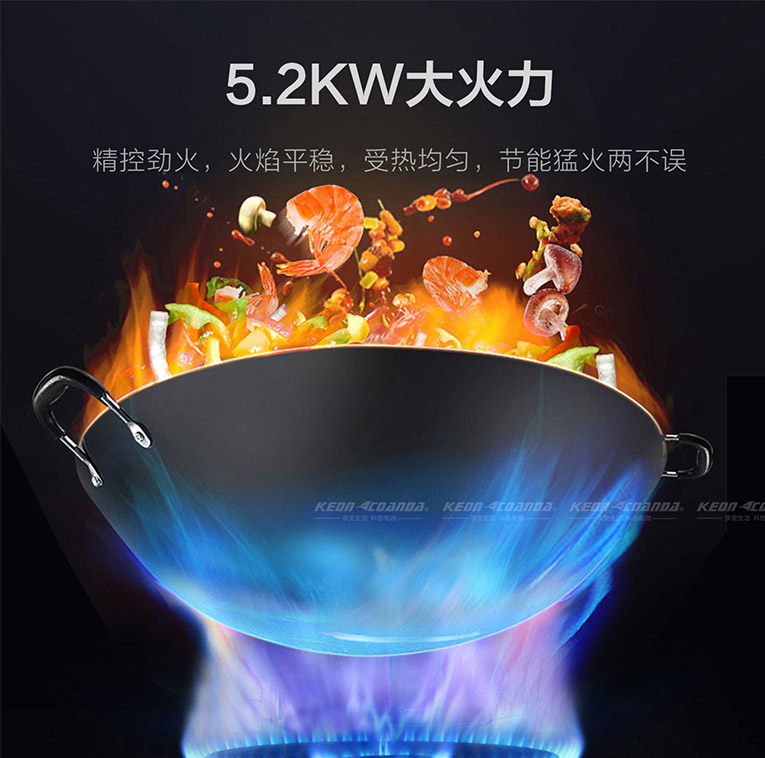 一臺好的灶具,火力大小是關鍵!是衡量一臺燃氣灶好壞的最重要的性能指標,如果火力過小就沒有辦法滿足爆炒的需求,而通常爆炒食材的口感更佳,營養也不易流失。集成灶十大品牌、廚電行業十大品牌科恩KN610智能防干燒灶具5.2KW大火力,精控勁火、火焰平穩,受熱均勻,節能猛火兩不誤!