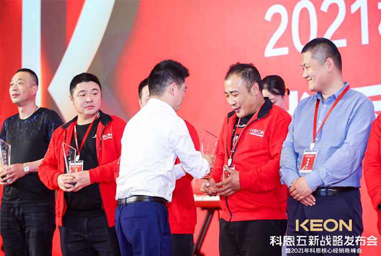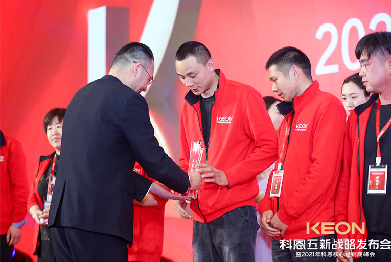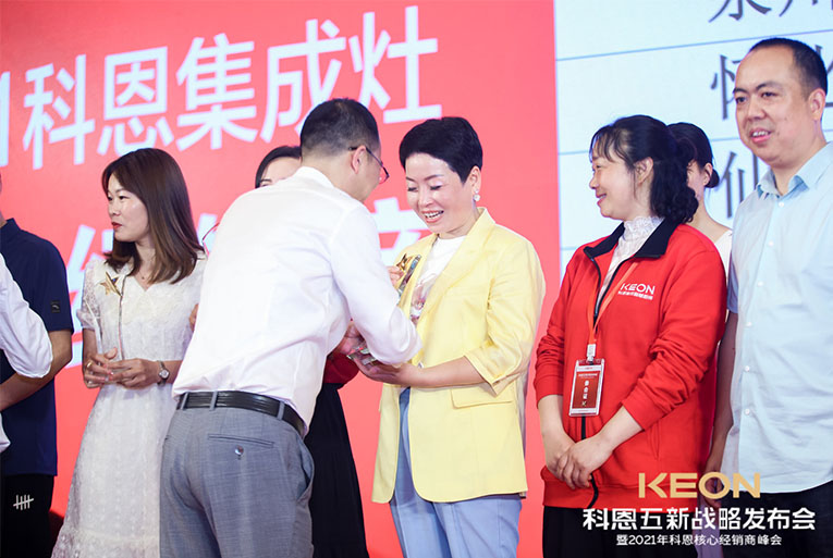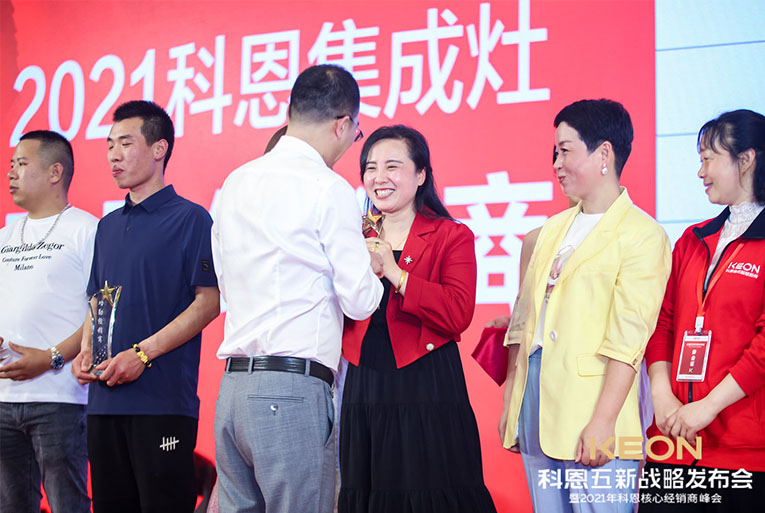 來自全國各地的獲獎經銷商登臺,雙手接下榮譽獎章,這份榮譽代表著他們堅守著不變的信念,對科恩事業永遠保持熱忱之心,行動和成績是他們給予的優秀答卷??贫麟娖靼l展至今,離不開全國所有經銷商們的共同努力,同心同行、攜手再創下一個黃金十年!