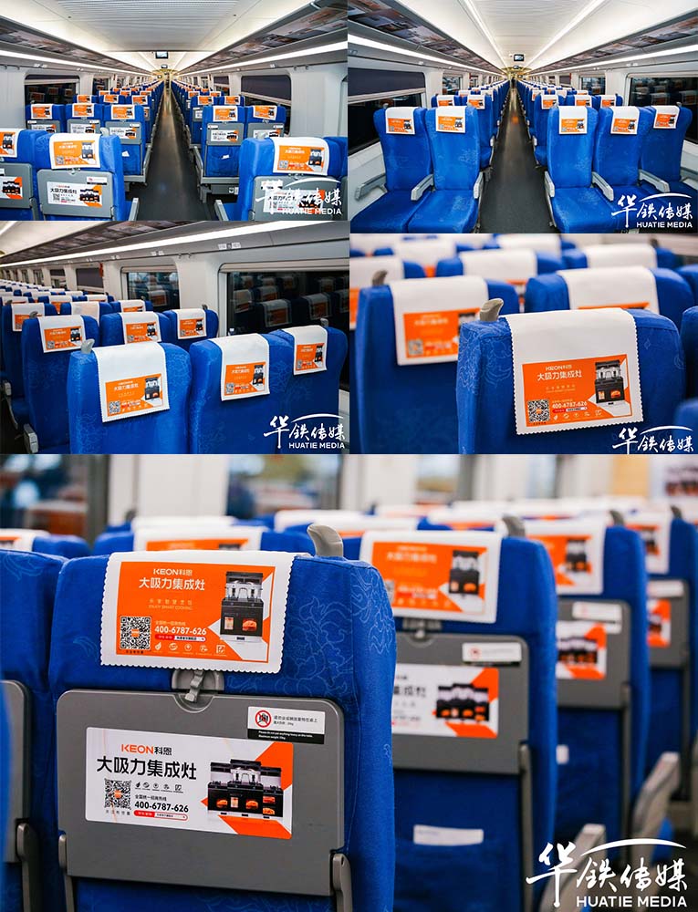 “科恩號”重裝上陣,強勢飛馳祖國廣闊土地,品牌廣告涵蓋頭片、桌貼、海報、品牌天幕等,多元化媒體形式,全方位、高頻次展示品牌信息,拉開了品牌高鐵列車視覺盛宴,科恩集成灶全方位覆蓋高鐵,占據了消費者視線,全面展示了集成灶十大品牌、廚電行業十大品牌科恩集成灶企業品牌實力,對于提高品牌傳播聲量、搶占市場,具有重要意義。
