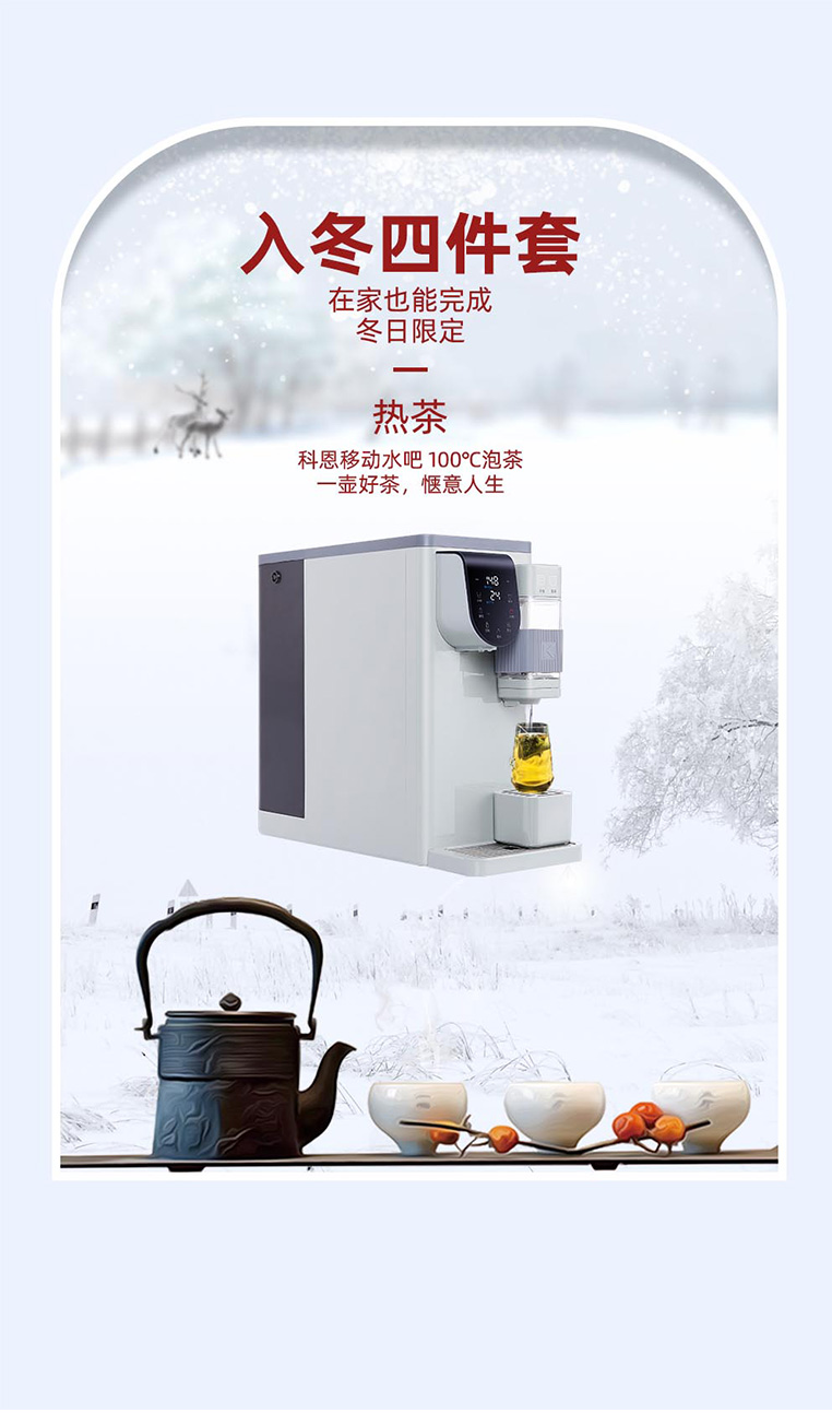 集成灶十大品牌、廚電行業十大品牌科恩R6068多功能移動凈水器全新上市,深度精濾,滴滴純鮮~1秒速熱不等待,輕松沖泡100℃好茶,根據個人口味加入牛奶,一杯暖到心里的奶茶輕松在家完成~