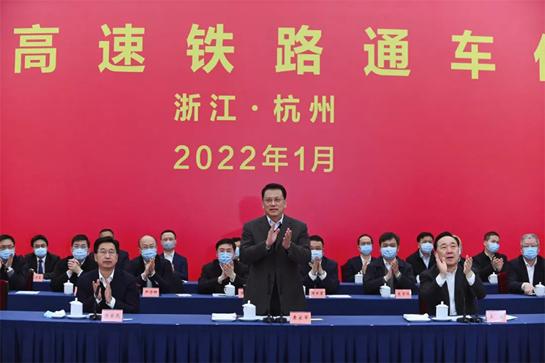 1月8日上午,浙江省委書記、省人大常委會(huì)主任袁家軍在省主會(huì)場出席儀式并宣布杭臺(tái)高速鐵路開通。