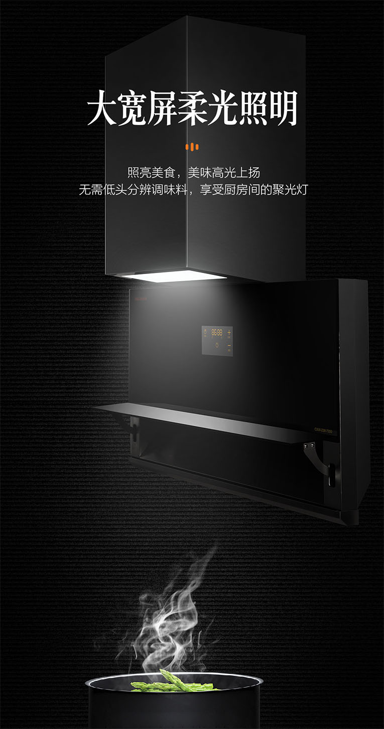 上方采用大寬屏柔光照明,發(fā)光均勻無暗影,照亮美食,美味高光上揚(yáng),無需低頭分辨調(diào)味料,享受廚房間的聚光燈。