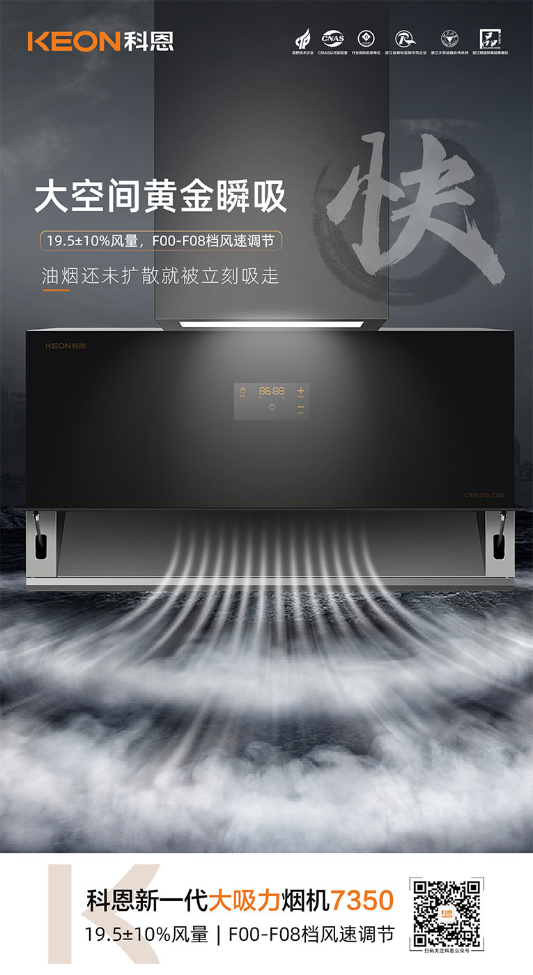 集成灶十大品牌、廚電行業(yè)十大品牌科恩新一代大吸力煙機(jī)7350即將上市,今天就跟隨小編一起,解鎖7350煙機(jī)獨特魅力。