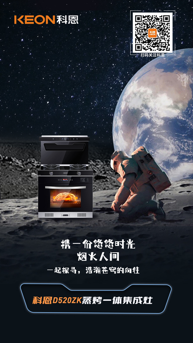 科恩D520ZK蒸烤一體集成灶以星際概念滲透廚房空間,方寸天地縱覽無垠闊境,廚房與星際云端跨界聯(lián)動,未來感與前沿科技相得益彰,科恩D520ZK由此誕生。