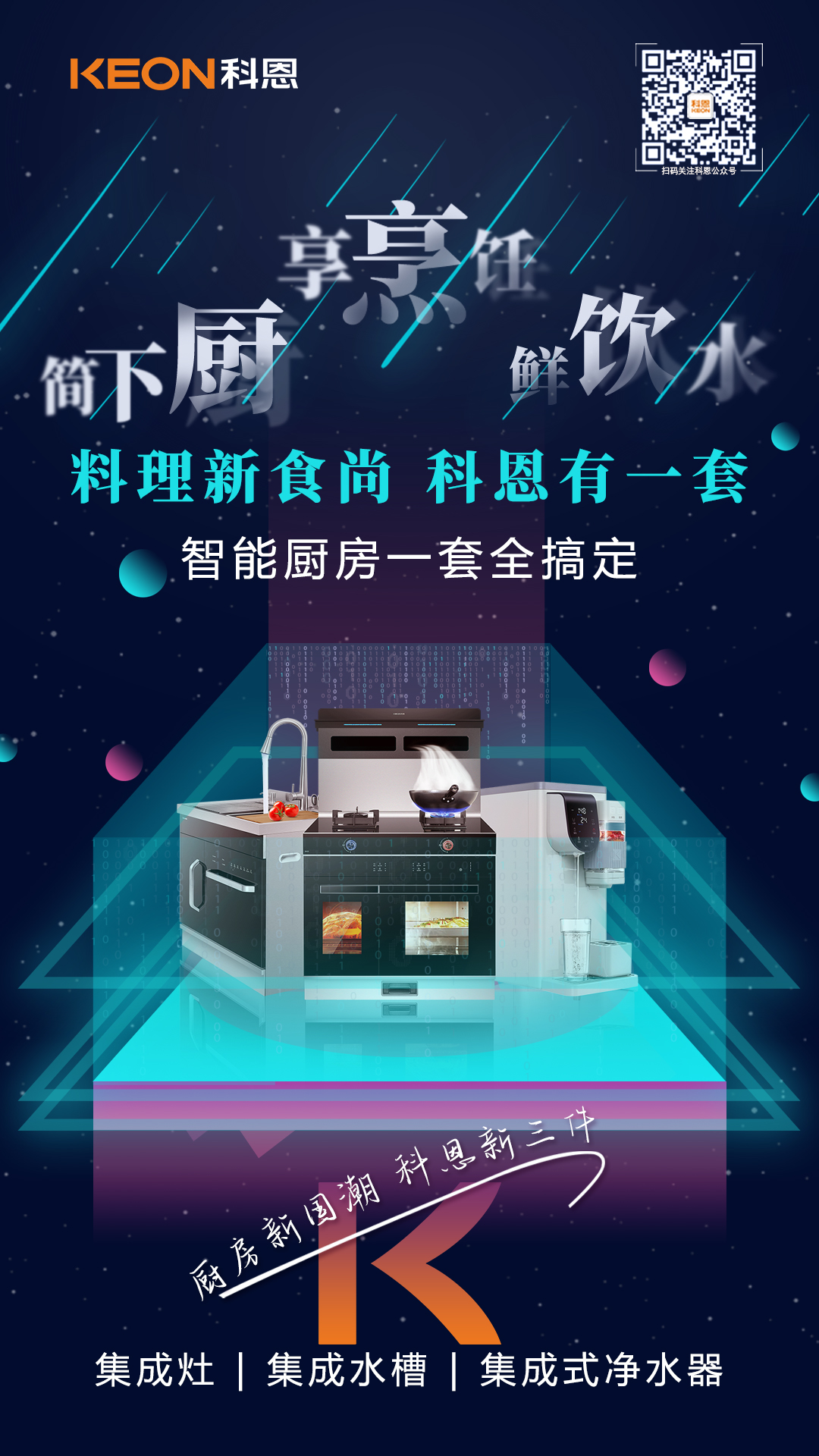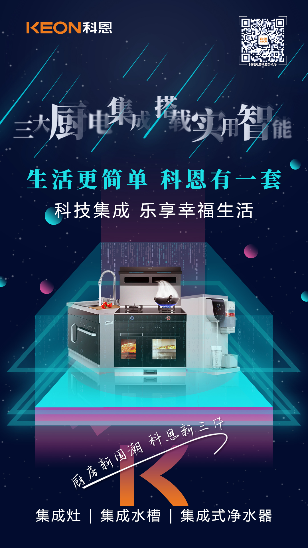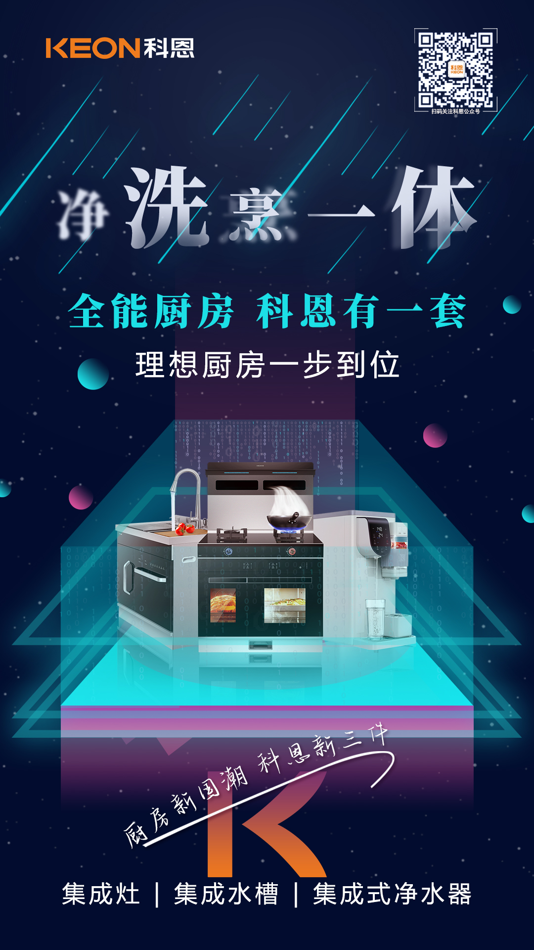 我們相信,廚房新國潮科恩新三件將為大家帶來更廣闊的想象空間和無限的可能性,未來,科恩電器將不斷夯實以烹洗凈為中心的集成智慧廚房戰略布局,以創新與服務為導向,堅守品牌初心,堅持產品之道!