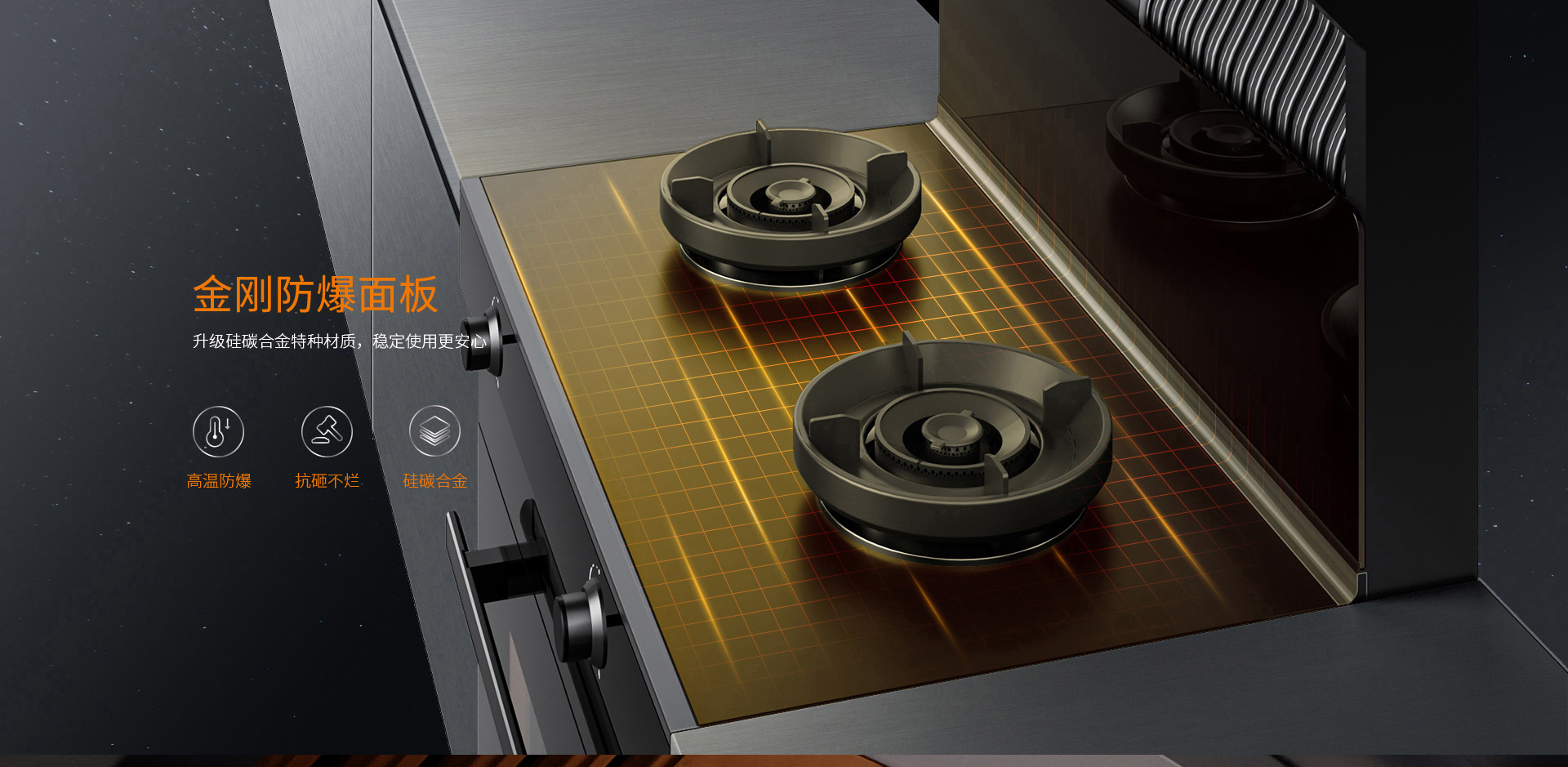 4. 臺面采用硅碳合金特種材質,不僅防爆耐高溫,還不沾油,更易潔。