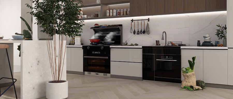 1.X6L將水槽、洗碗機(jī)、果蔬凈化器、消毒柜、櫥柜融為一體,足矣解決廚房所有清洗難題。