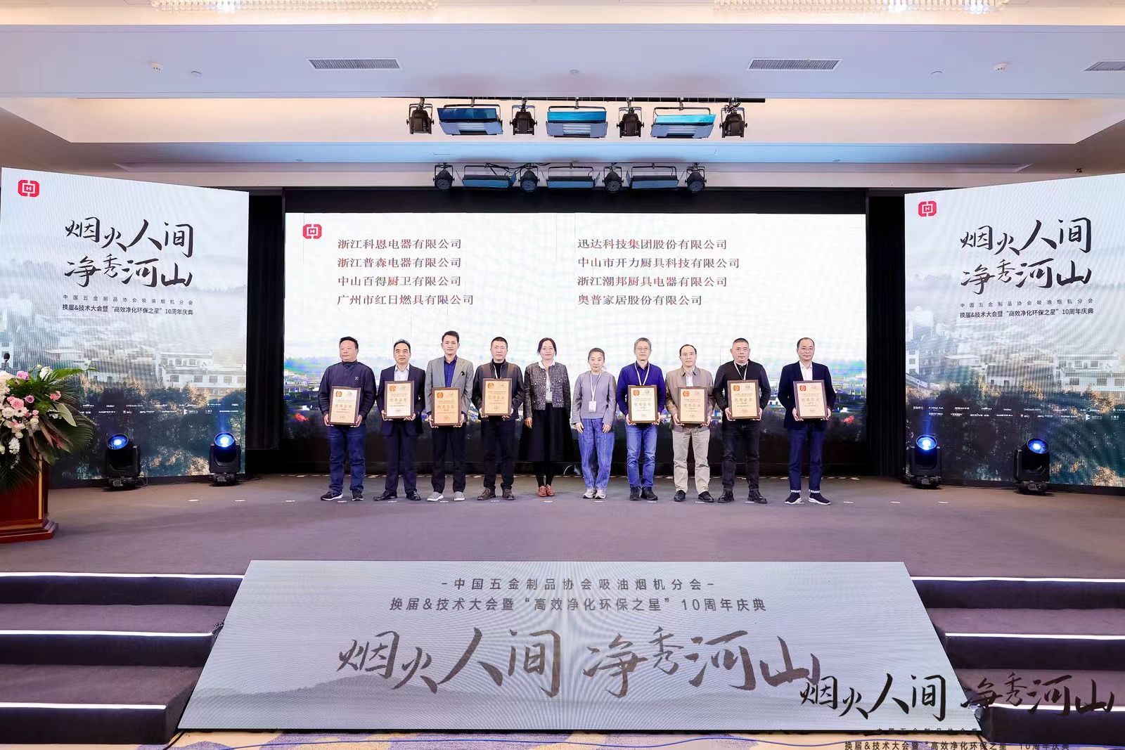 2023年11月28日,主題為“煙火人間 凈秀山河”有中國五金制品協(xié)會召開的“中國五金制品協(xié)會吸油煙機分會·換屆&技術(shù)大會暨‘高效凈化環(huán)保之星’10周年慶典”在杭州隆重舉辦。會上發(fā)布了獲得本屆“高效凈化環(huán)保之星”的優(yōu)秀企業(yè),并向多年來連續(xù)參與此項目并表現(xiàn)突出的企業(yè)給予了嘉獎。科恩再一次榮獲“中國五金制品協(xié)會-理事單位”及“中國集成灶推動落實國務(wù)院《大氣污染防治行動計劃》-優(yōu)秀企業(yè)”!