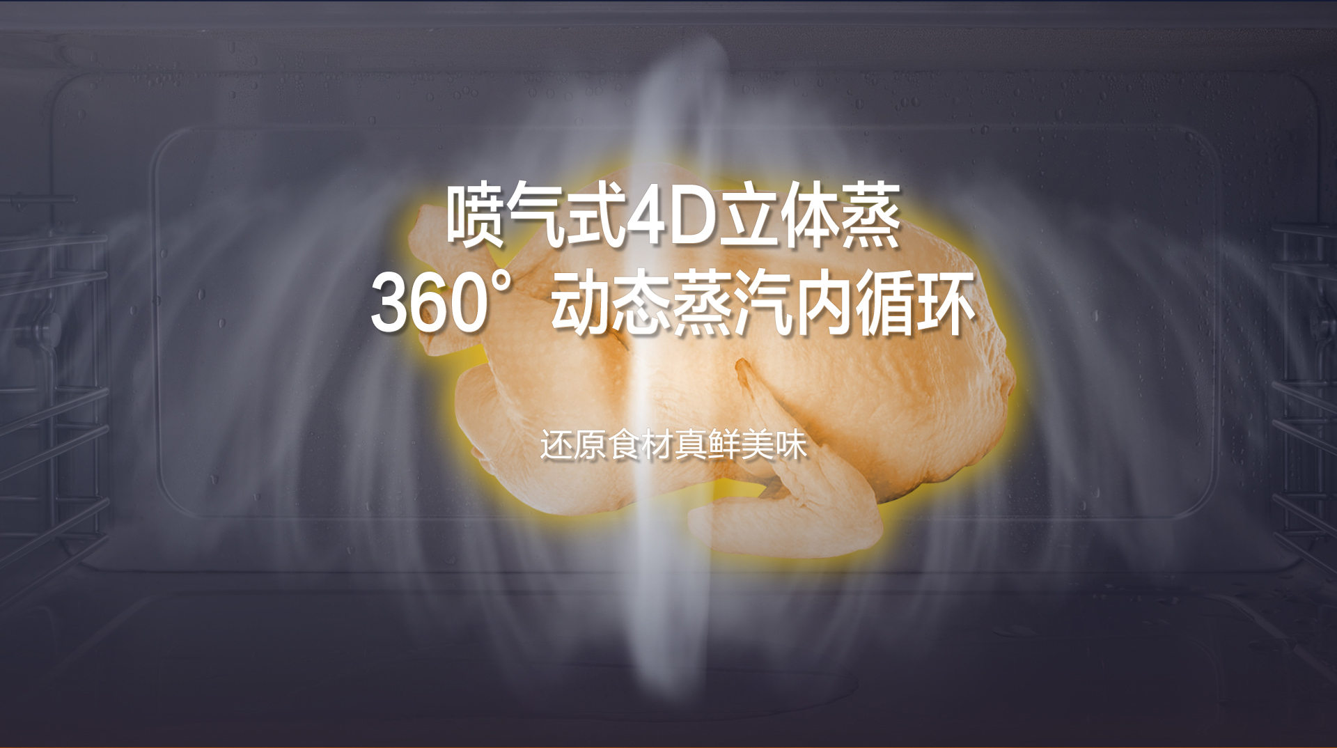 噴氣式4D立體蒸,360°動態蒸汽內循環,還原食材真鮮美味。