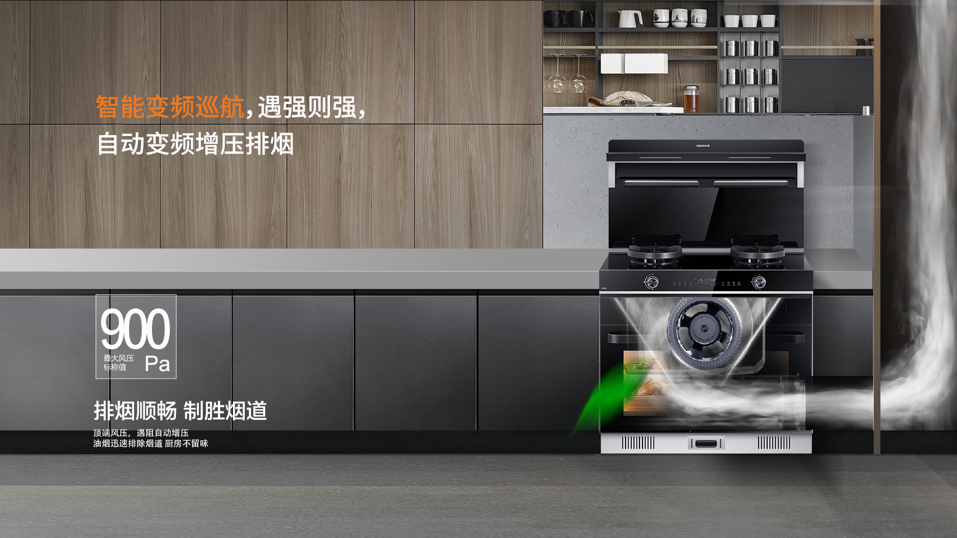 S450L蒸烤獨立集成灶風(fēng)力可達23m³颶風(fēng)吸力,真正實現(xiàn)消煙于源頭。同時,搭載智能變頻巡航功能,遇強則強,自動變頻增壓排煙,,即使做飯高峰期也能保障廚房清爽無異味。