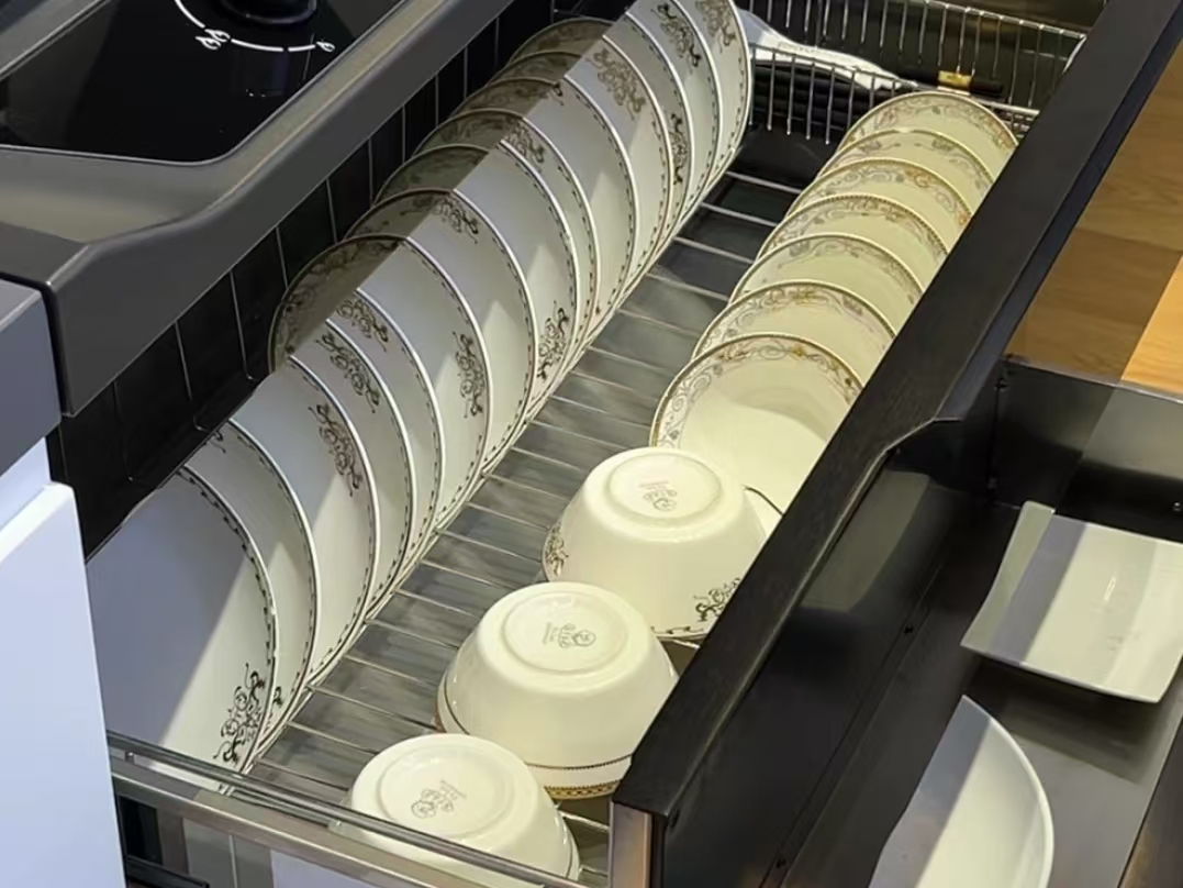 當普通消毒柜還在玩高溫殺菌時,P10已實現臭氧+紫外線+遠紅外的三維打擊可消滅大腸桿菌、幽門螺桿菌等99.99%病菌,母嬰用品也可安心用。消毒時自動開啟屏鎖,電路配備過載保護,守護全家人的健康安全。更貼心的是熱風烘干功能,告別梅雨季餐具發霉煩惱。185L超大容量雙抽設計,可容納40+碗盤、30+筷子勺叉及杯具,朋友聚餐時再也不用上演“鍋碗瓢盆大逃亡”。碗筷分區存放,避免餐具交叉污染,守護每一餐安心。
