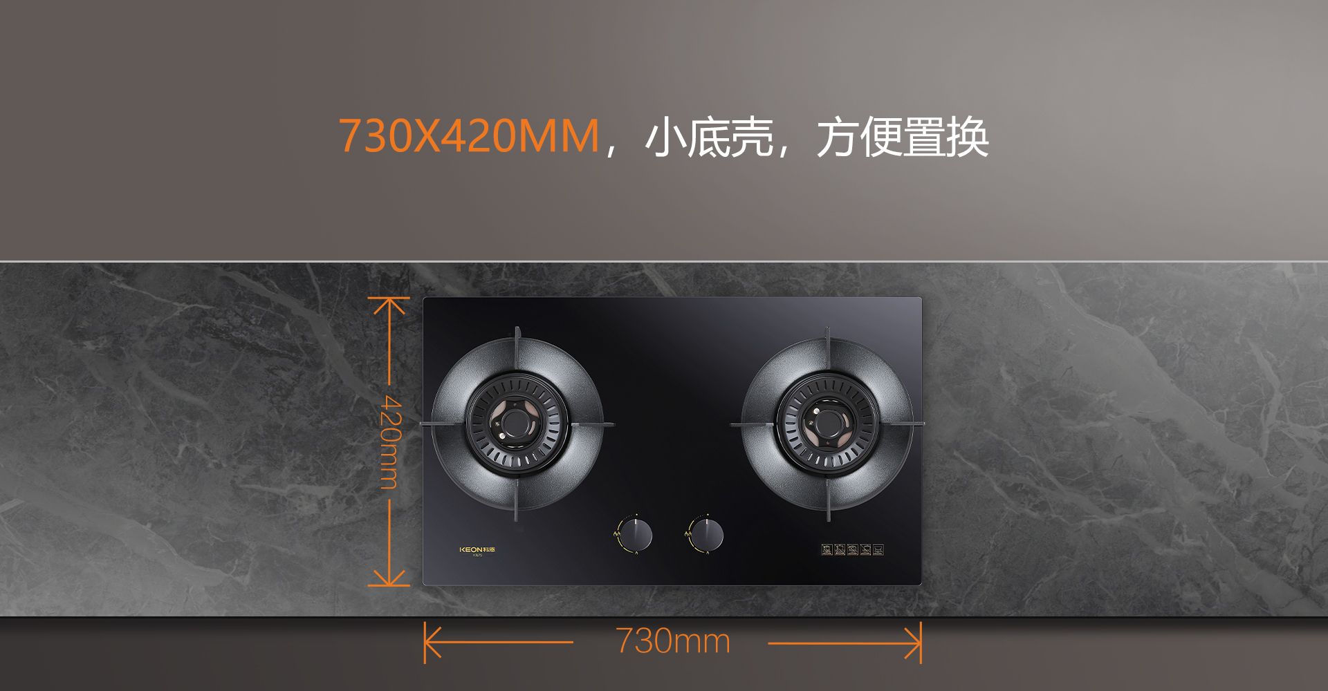 黑金面板,易潔耐造。黑晶玻璃觸感細膩光滑,抗腐抗氧無懼日常磨損,湯汁濺落一擦即凈,告別頑固污漬困擾,保持廚房潔凈時刻在線,煥新清潔便捷體驗。小巧機身,置換無憂。730×420mm纖薄底殼,適配各類老廚房布局,無需改動櫥柜結構,舊灶升級一步到位,煥新成本大幅降低,老廚房變身精致烹飪區。