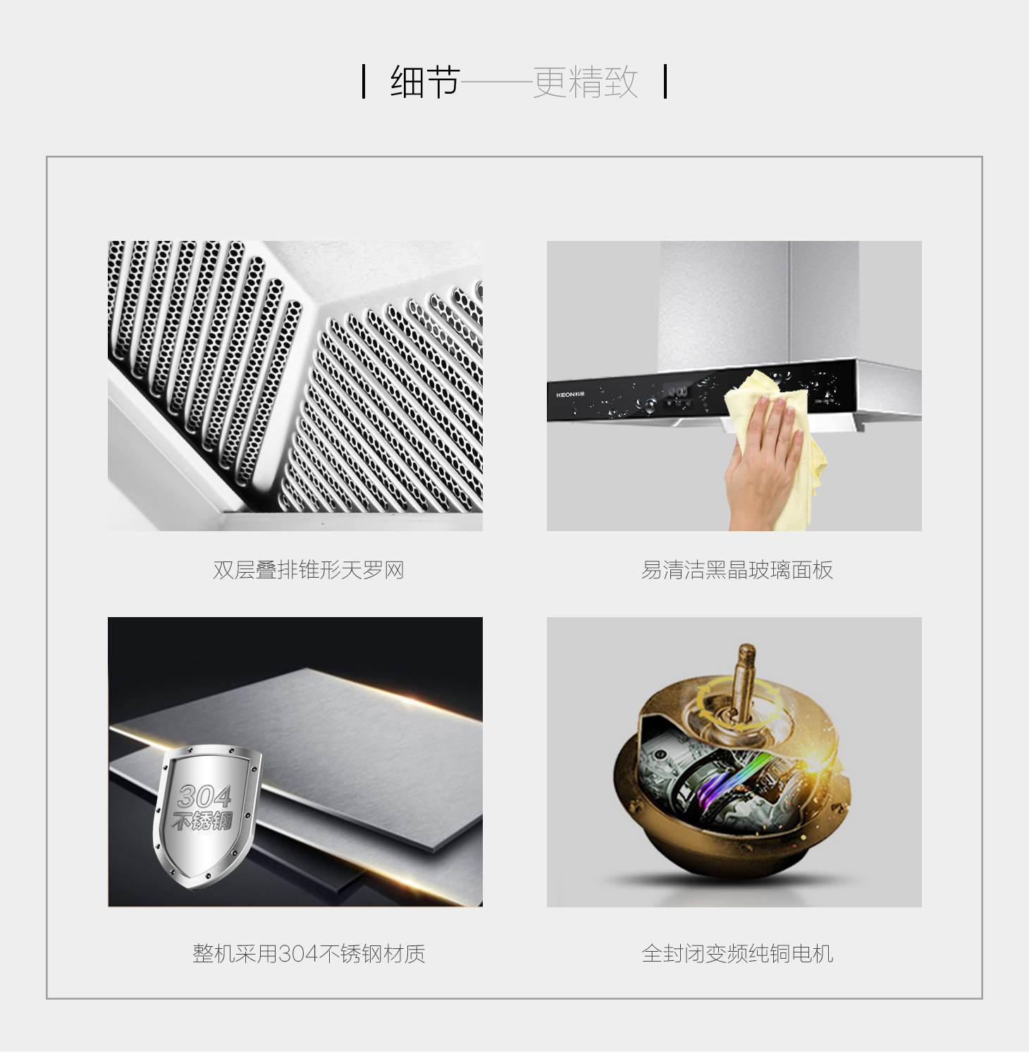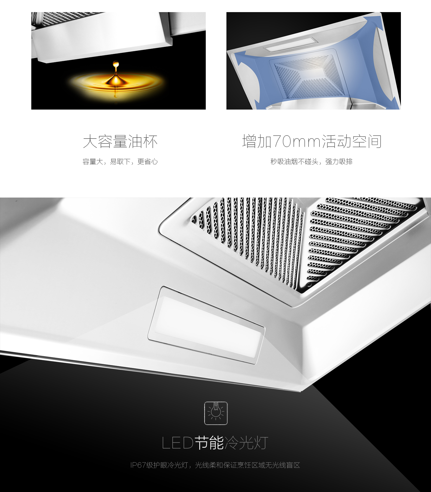 - 增加70mm活動(dòng)空間,秒吸油煙不碰頭。