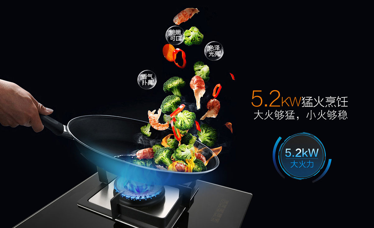 • 5.2KW大火力,精控勁火,火焰平穩,受熱均勻,節能猛火兩不誤