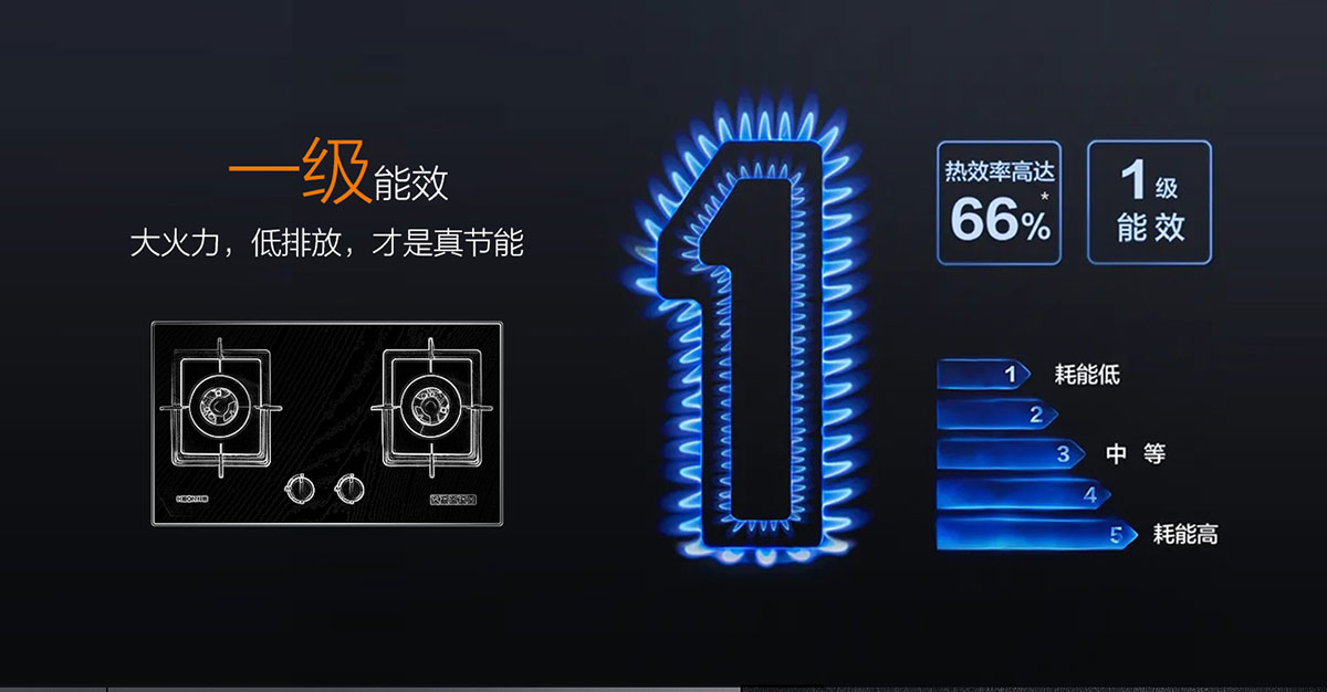 • 猛焰更節能,66%的熱效率,燃燒更充分,一級能效更省氣