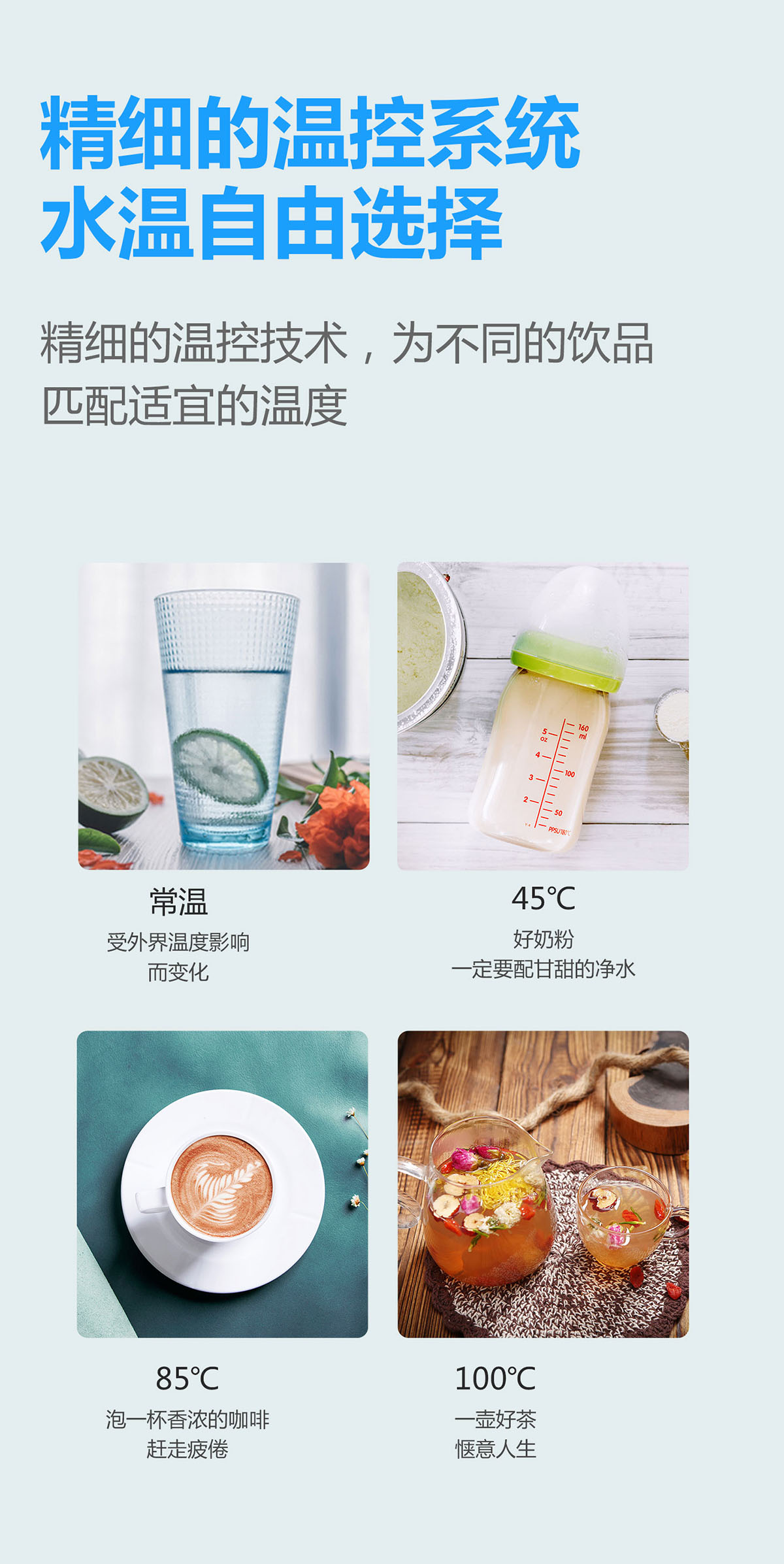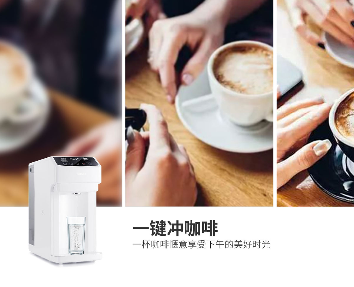 • 3秒速熱,4檔溫控(常溫、泡奶、沖咖啡、泡茶),一鍵操作,方便快捷
