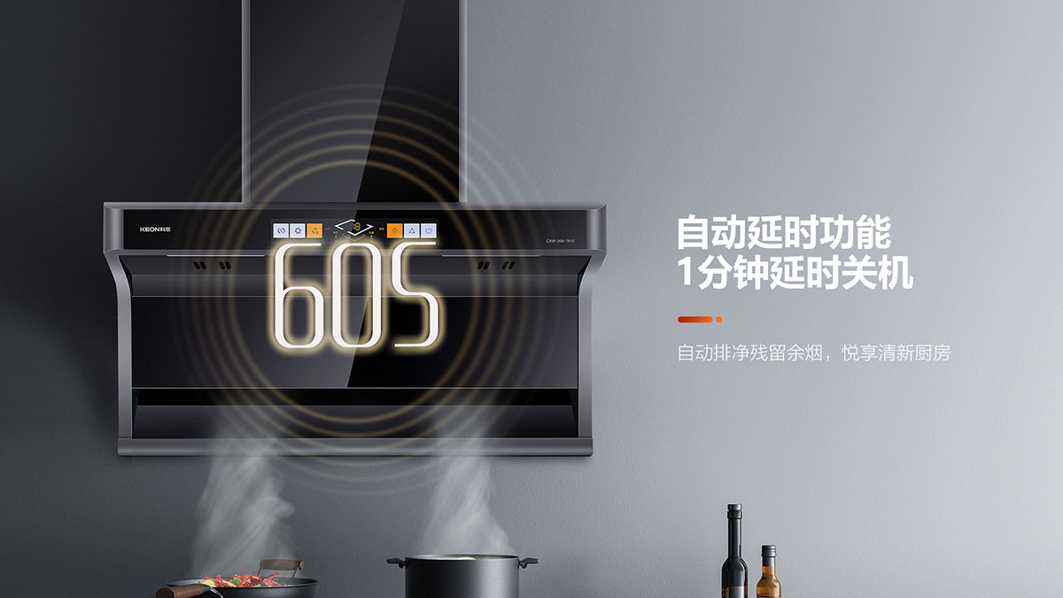 - 自動延時功能,1分鐘延時關(guān)機,自動排凈殘留余煙,悅享清新廚房