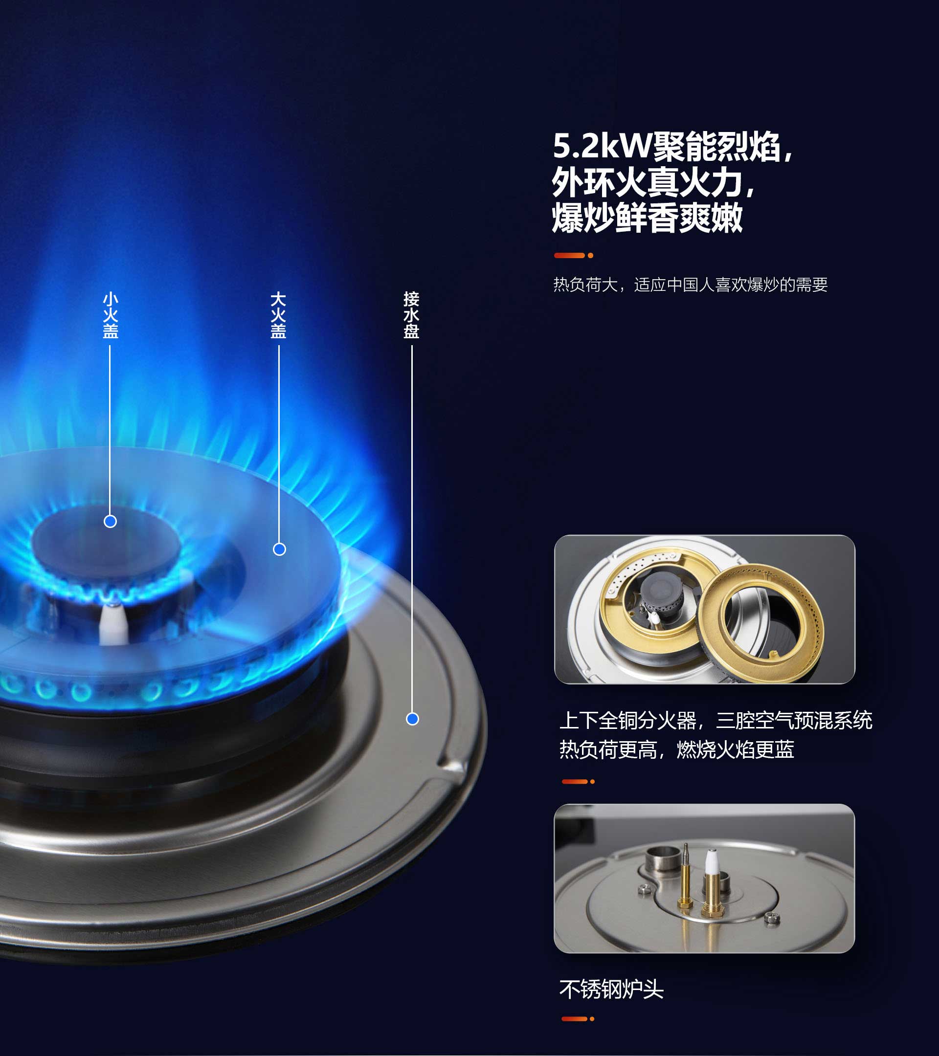 材 質(zhì):防爆鋼化玻璃面板、不銹鋼爐頭、鑄鐵鍋架