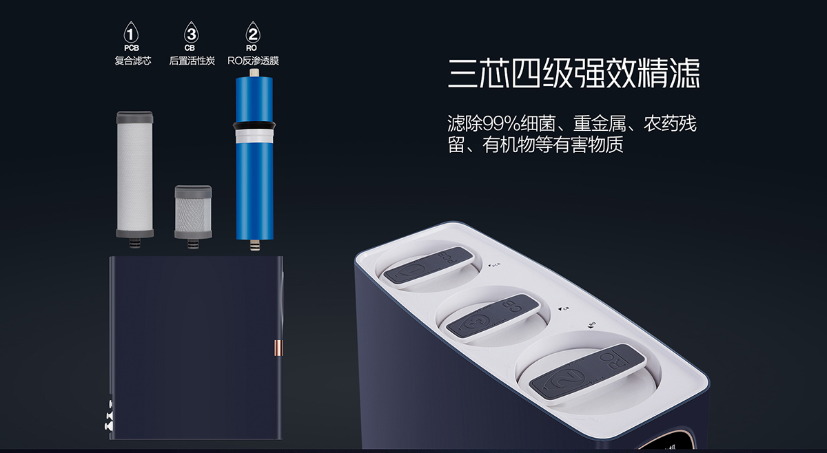 • 三芯四級強效精濾,濾除99%細菌重金屬