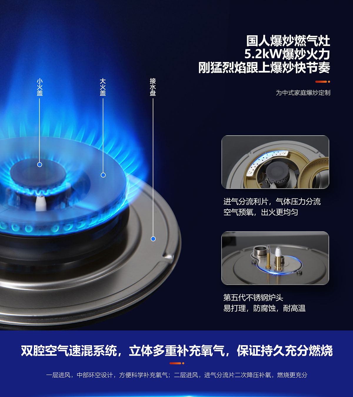 • 5.2kw爆炒大火力,高效環噴炒出大廚味道
