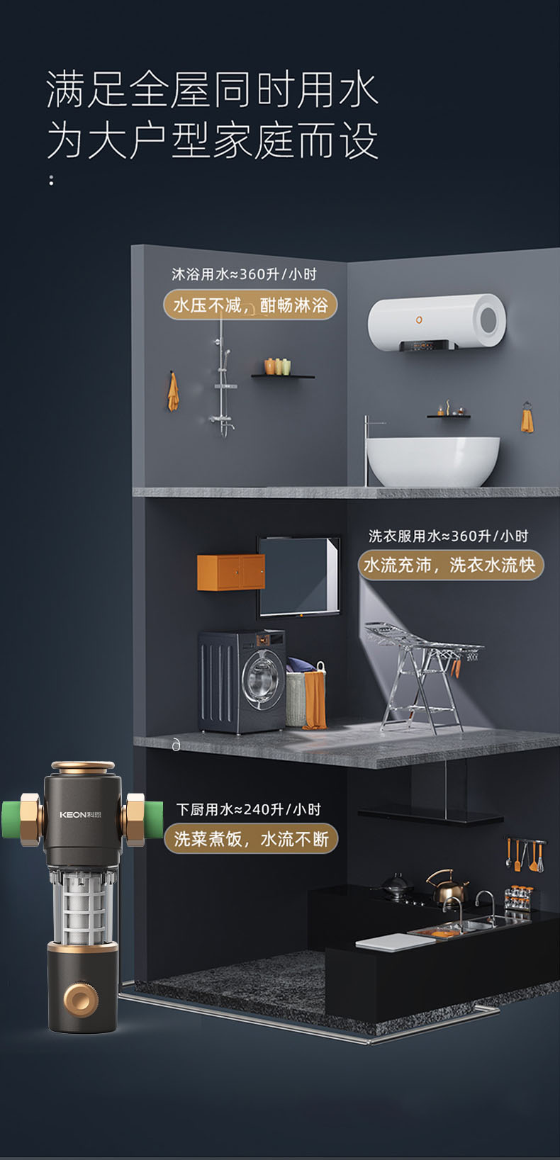 - 源頭過濾,全屋凈化