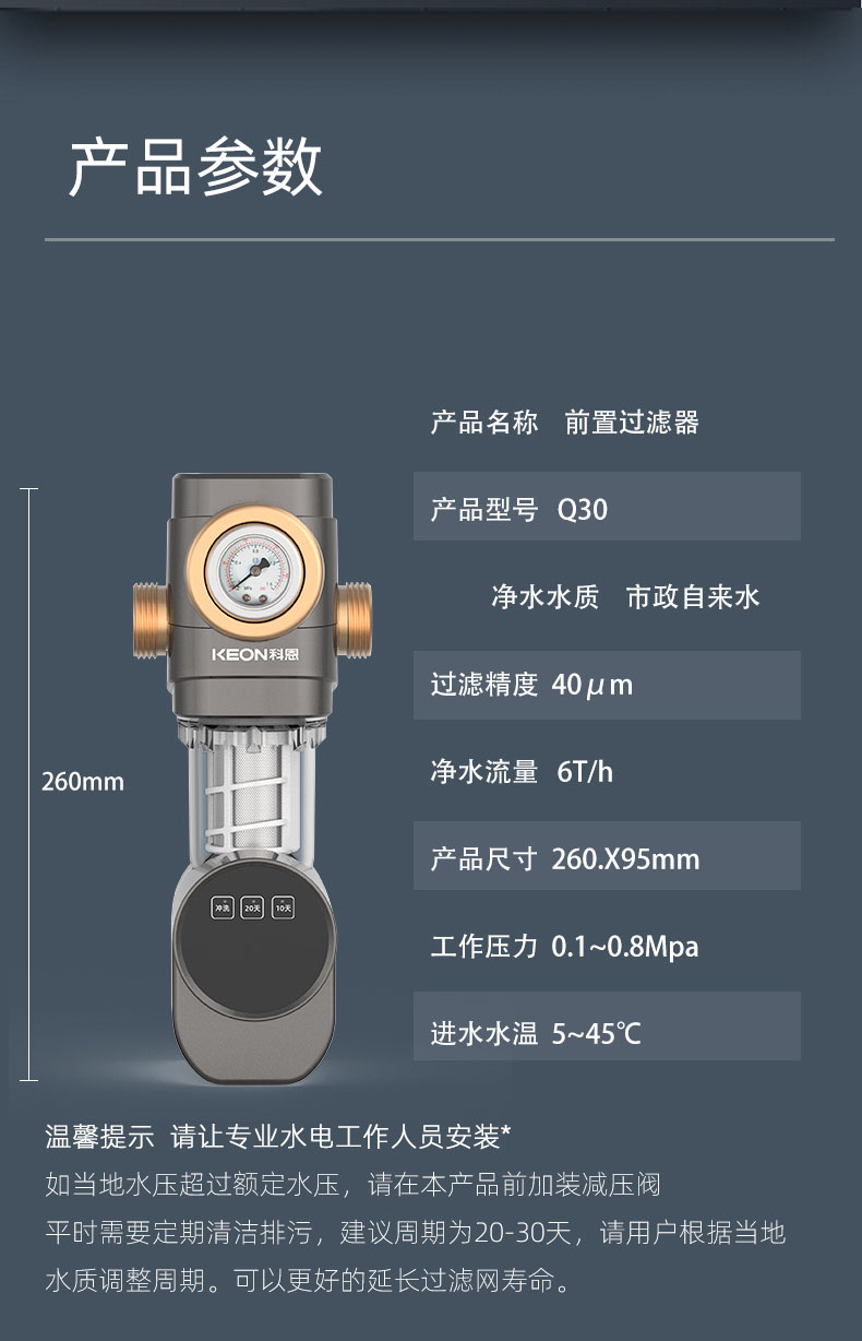 • 6噸/小時大流量,快速過濾,用水無壓力