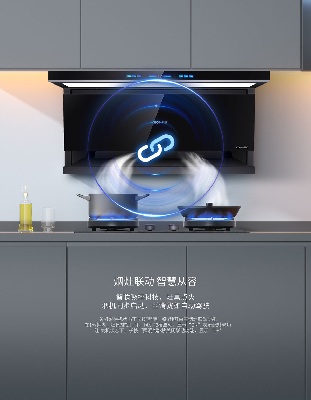 • 煙灶聯動, 智慧從容,智聯吸排科技