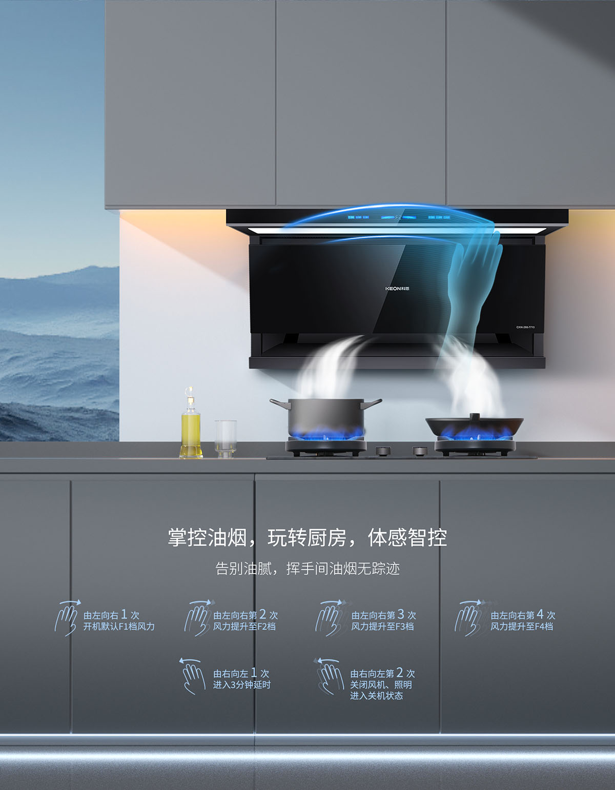• 體感智控,揮手間油煙無蹤,杜絕油膩