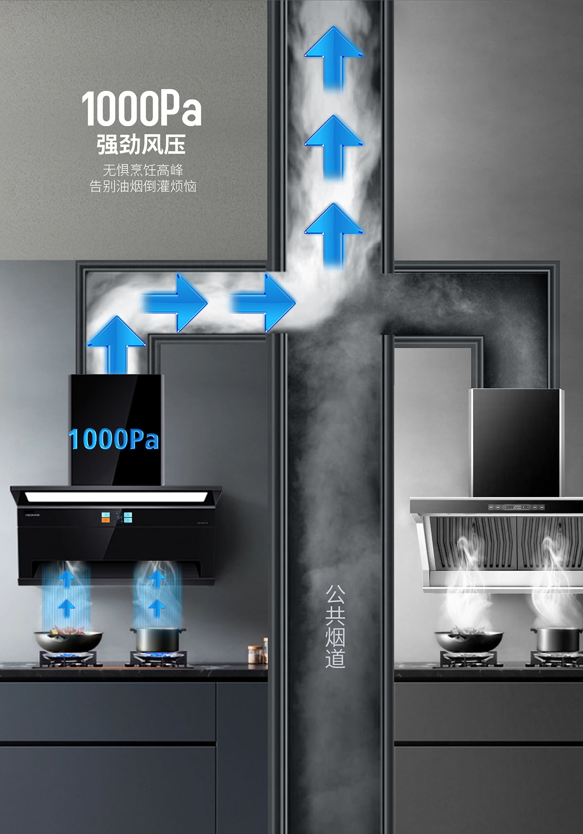 - 1000Pa大風壓,告別油煙倒灌煩惱