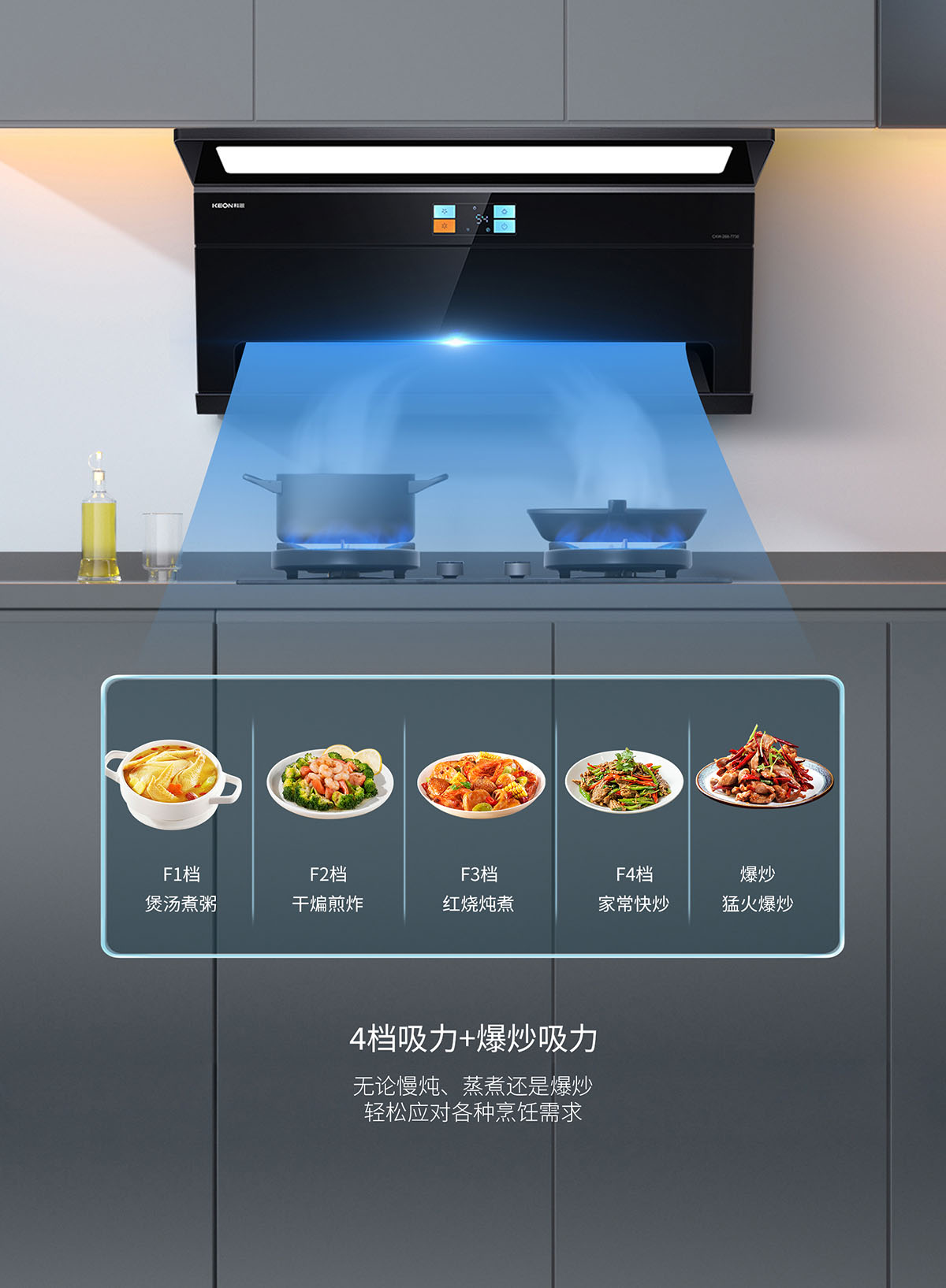 - 4+1檔風力,輕松應對各種烹飪需求