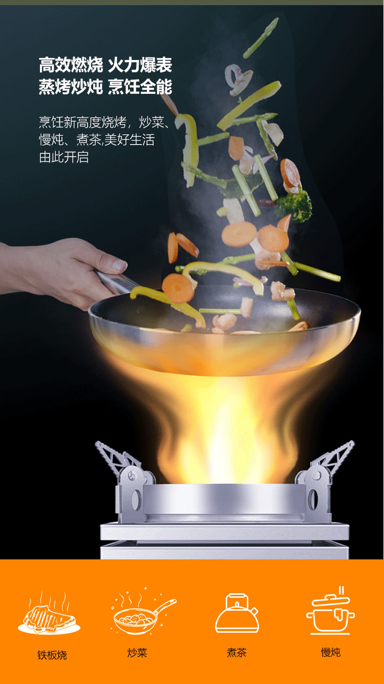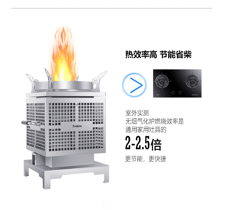 - 3D繞流爐膛,科學供氧,猛火無煙