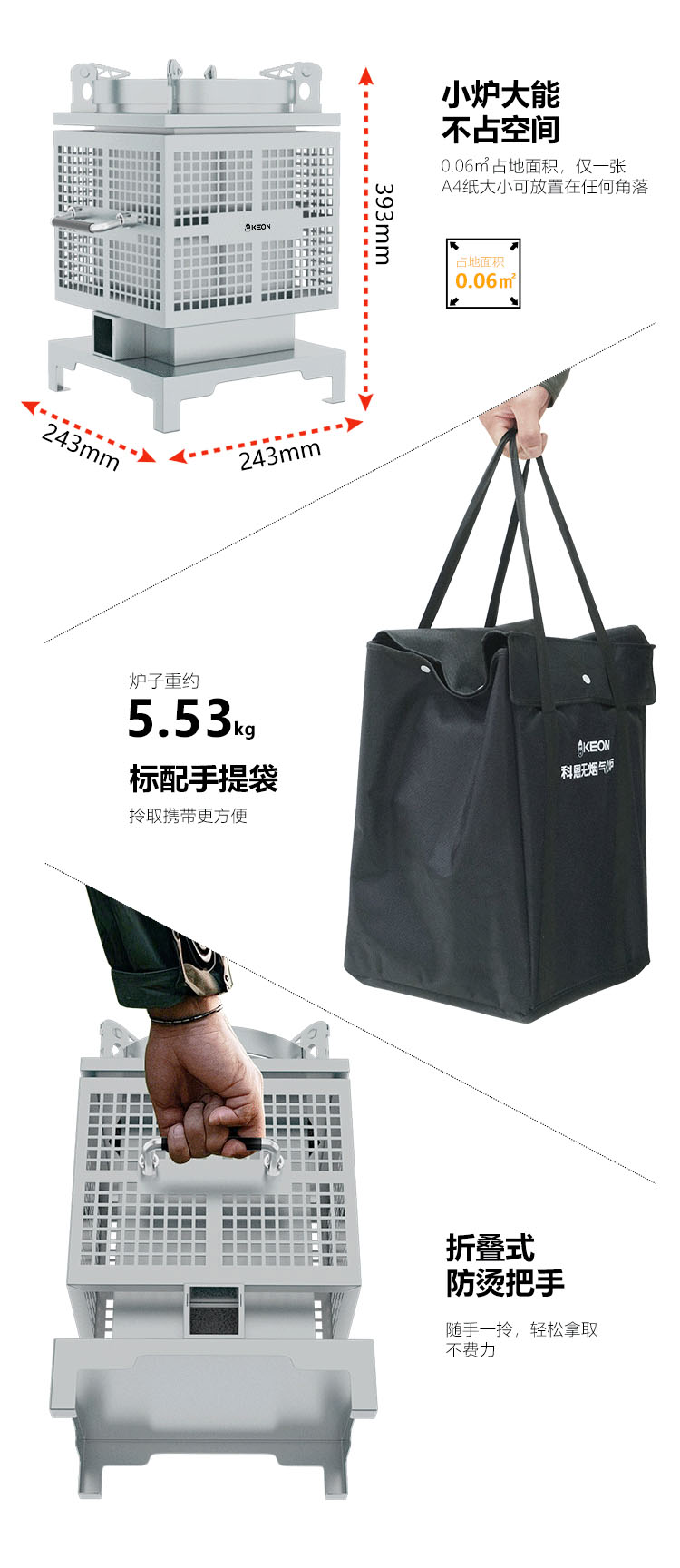 - 折疊式防燙把手,釋放空間,移動方便