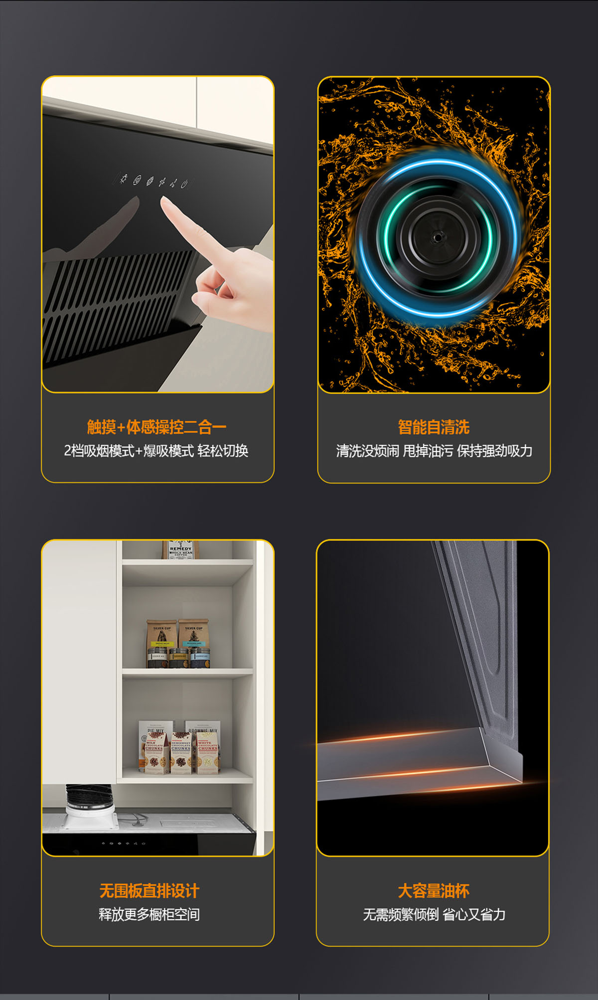 - 攏、吸、排三點一線,暢吸直排,高效凈煙