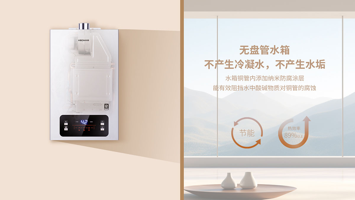 - 無氧銅水箱環保、節能、高效,熱效率高達89%以上