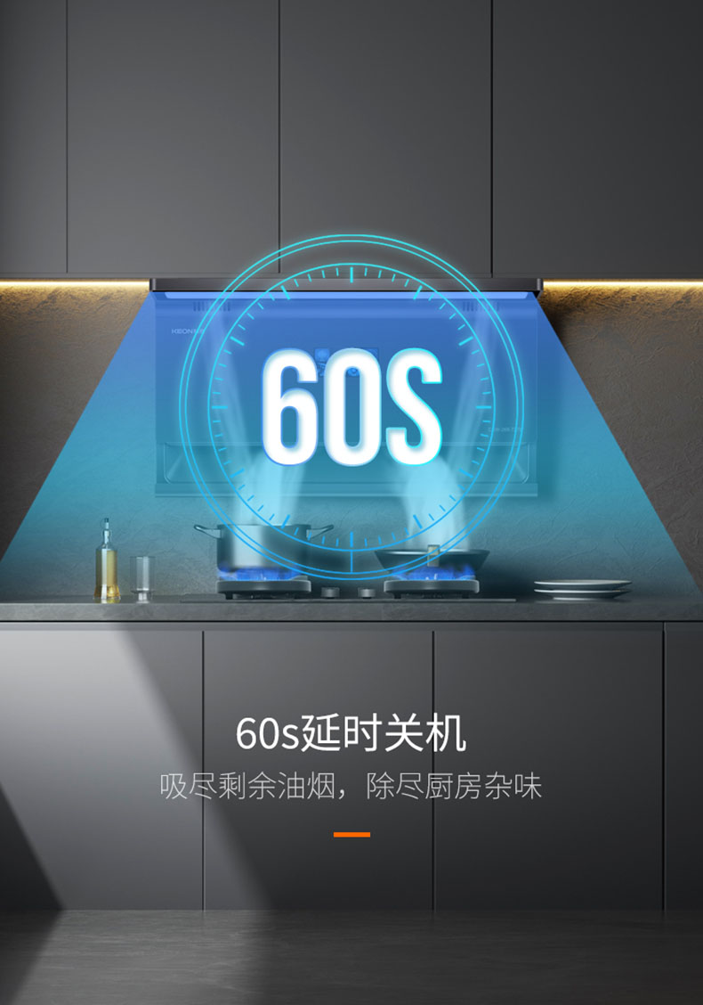 - 60s延時關(guān)機吸盡剩余油煙,除盡廚房雜味
