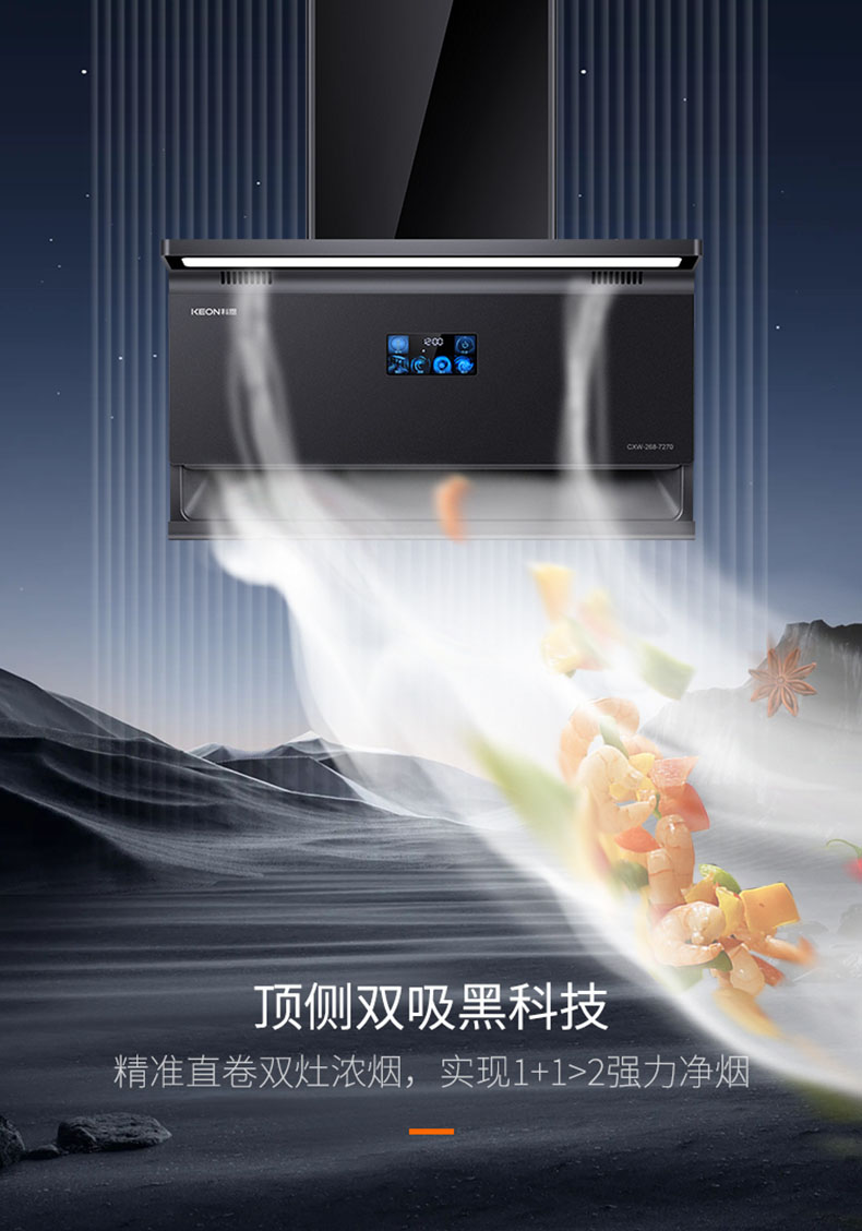 - 頂側(cè)雙吸,精準直卷雙灶濃煙
