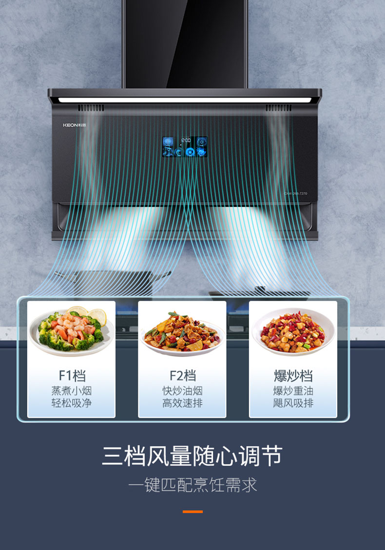 - 三檔風量隨心調(diào)節(jié),一鍵匹配烹飪需求 。