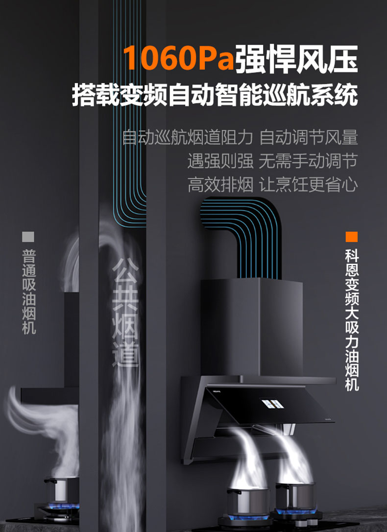 - 1060Pa強(qiáng)風(fēng)壓,高峰期烹飪排煙暢行無阻