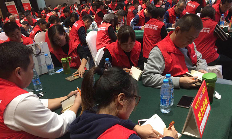 隨后的互動(dòng)環(huán)節(jié),為了使在座的全體經(jīng)銷商家人能夠全身心的參與啟動(dòng)會(huì)的各項(xiàng)議程,以互動(dòng)的形式開(kāi)展了一系列的破冰游戲,以迥異的英姿和飽滿的熱情展現(xiàn)了彼此的自信與風(fēng)采,以團(tuán)結(jié)的姿態(tài)投入為期三天的特訓(xùn)。大會(huì)現(xiàn)場(chǎng)氣氛活躍積極,洛陽(yáng)各經(jīng)銷商家人和科恩育商團(tuán)隊(duì)相互探討,共謀發(fā)展,并認(rèn)真進(jìn)行了實(shí)戰(zhàn)模擬演練。縝密的會(huì)議籌備、鏗鏘的會(huì)議進(jìn)程,鼓舞了在場(chǎng)經(jīng)銷商家人們齊聚一心,向未來(lái)廚電市場(chǎng)發(fā)起凌厲攻勢(shì),實(shí)現(xiàn)廠商互利共贏的新局面。
